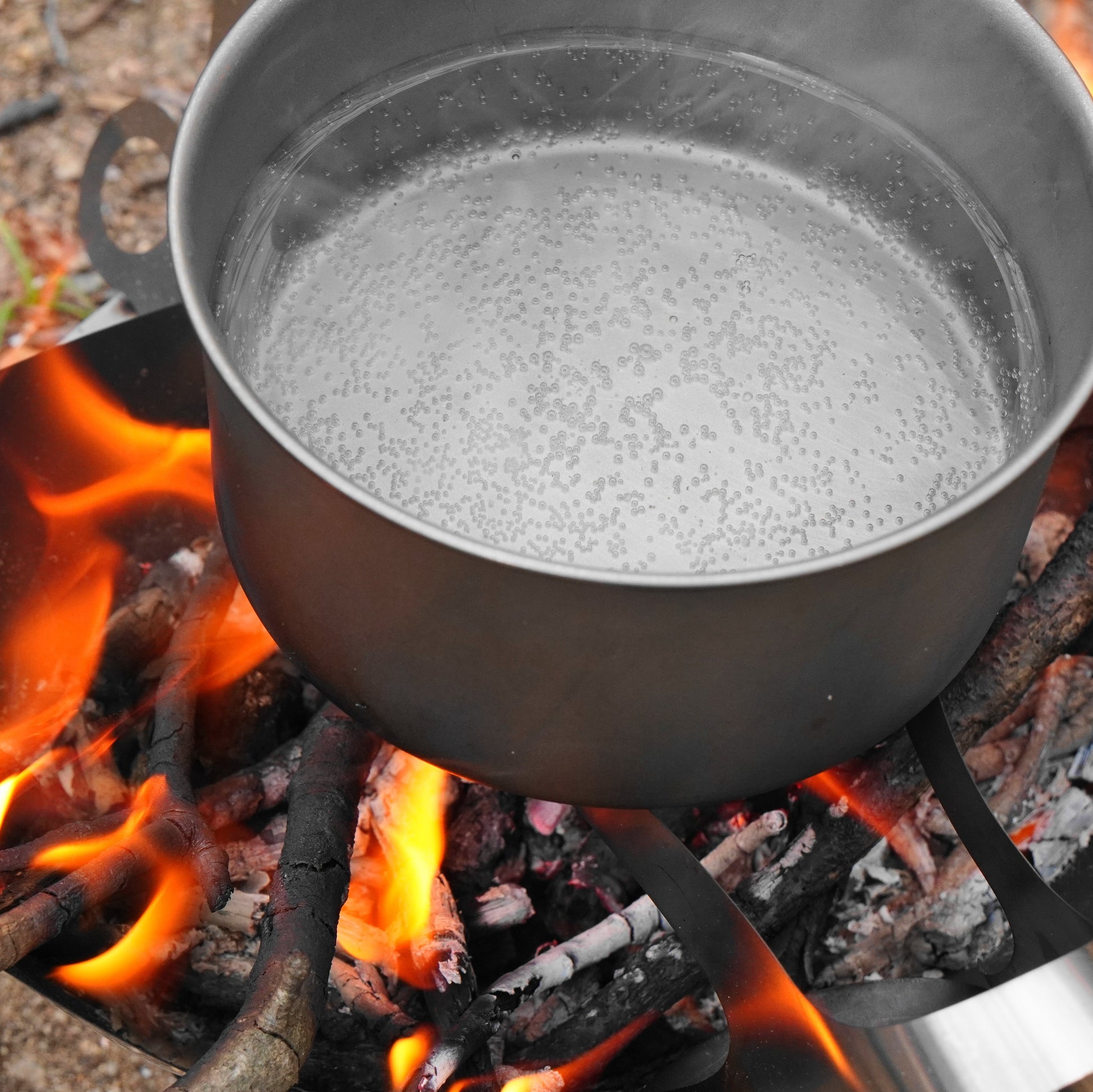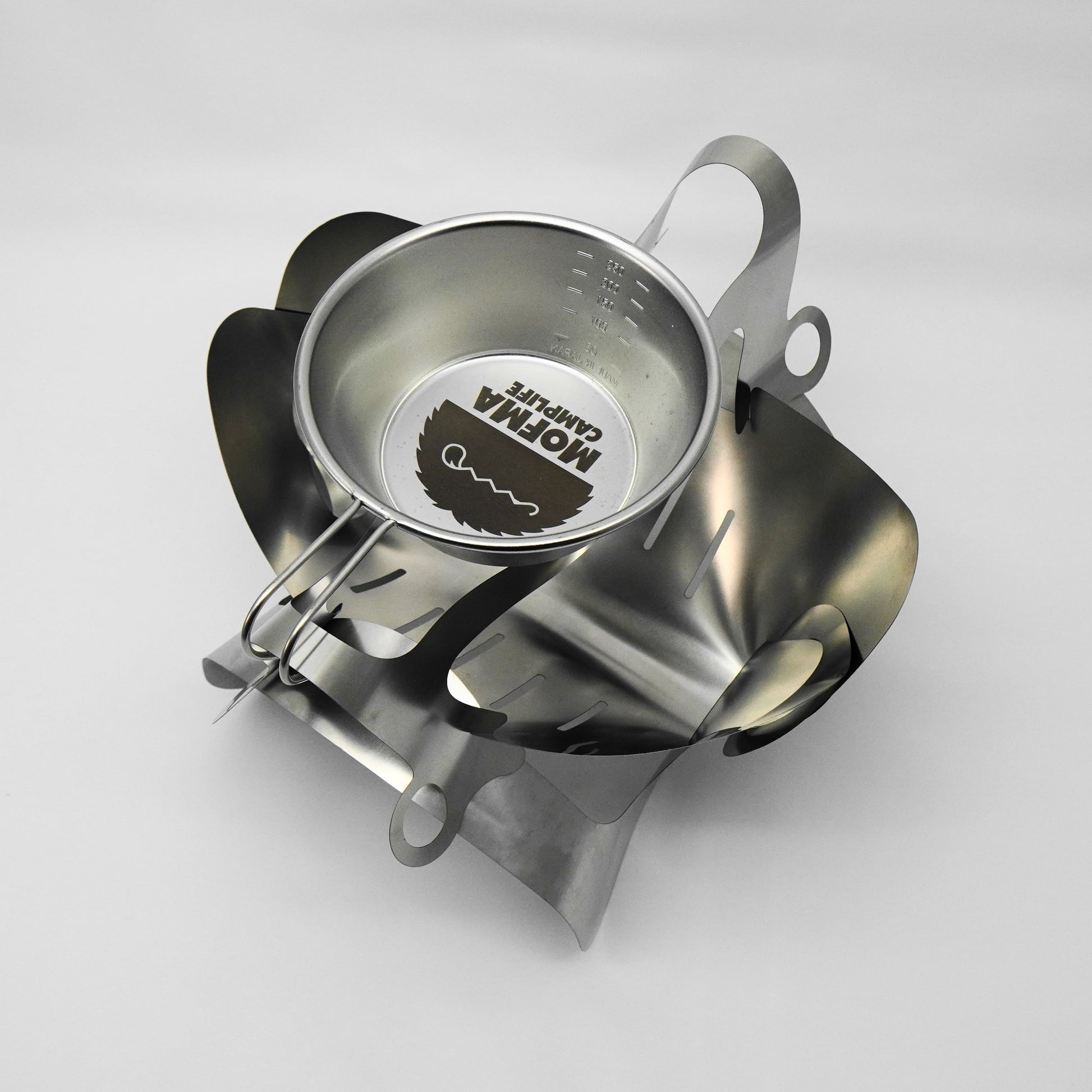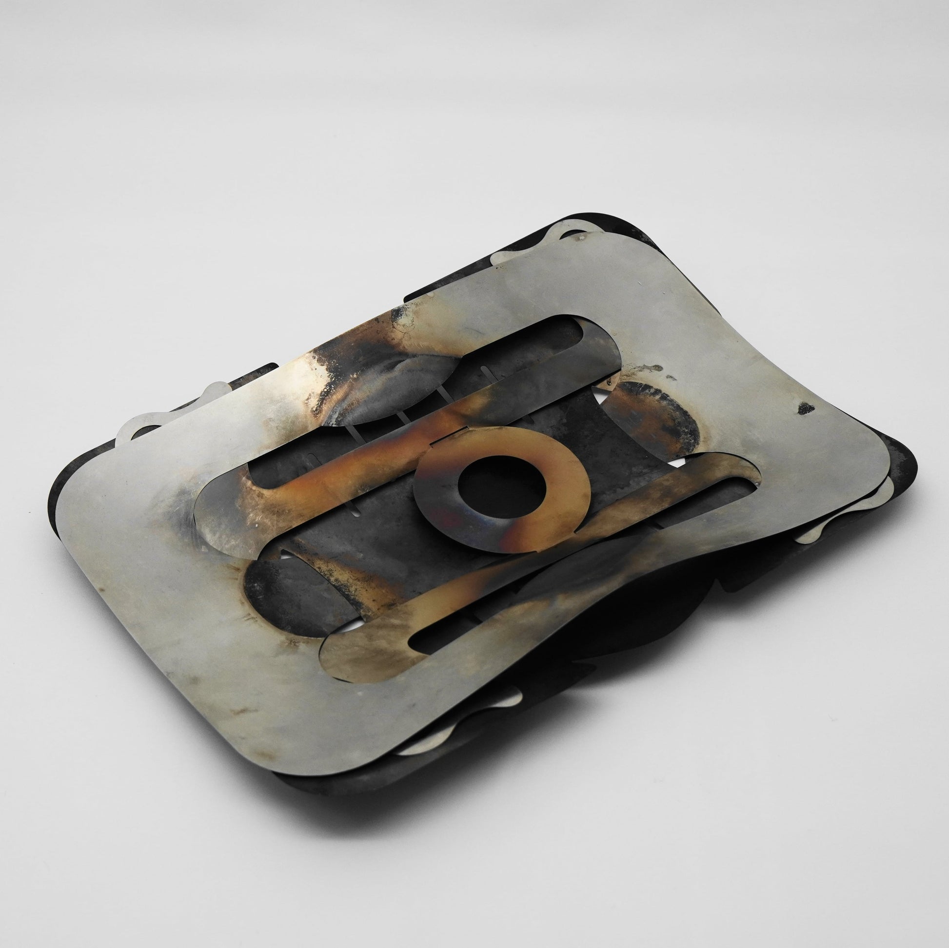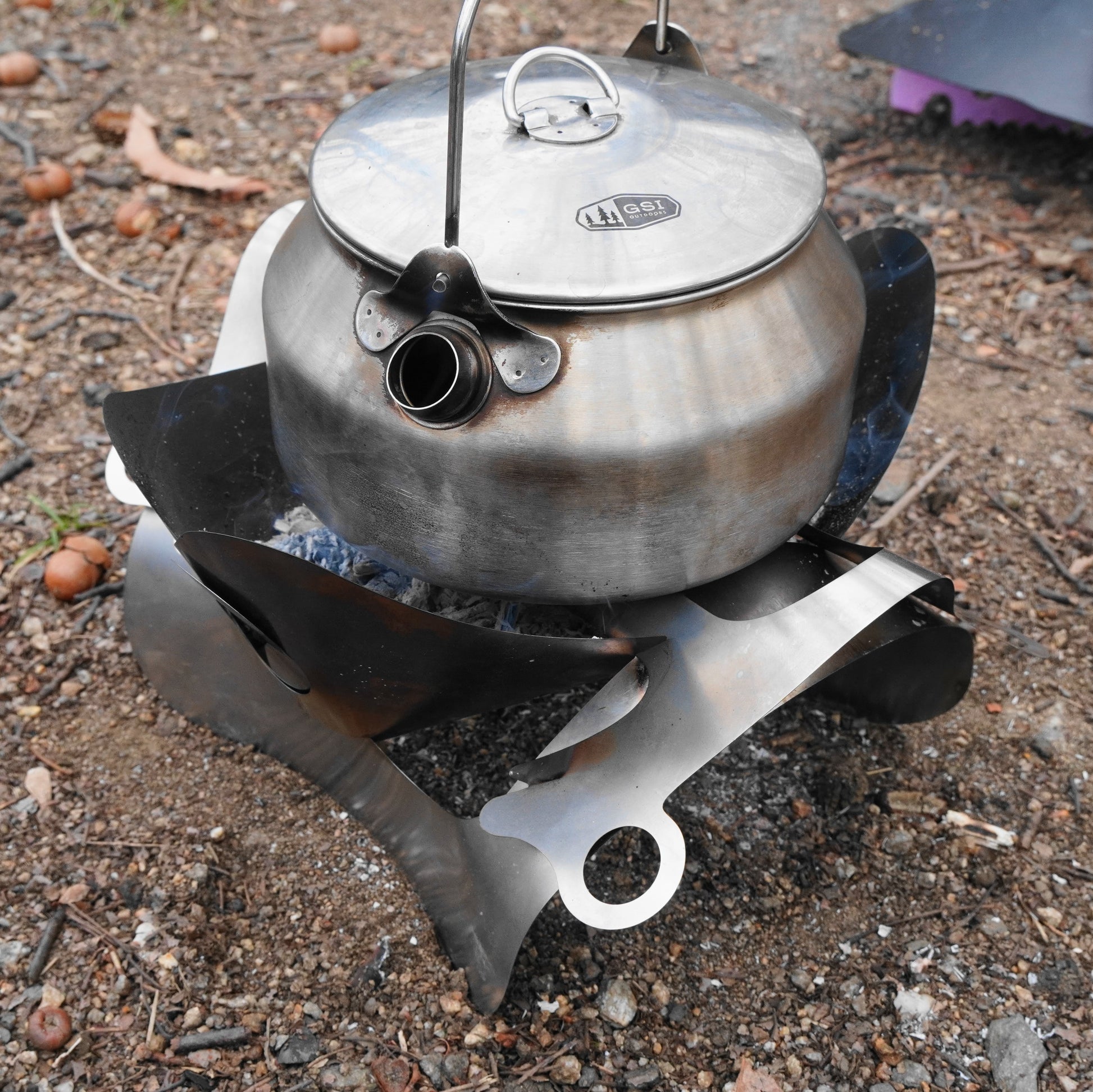 低い状態で焚火台にアルコールバーナーを置き、風防&ゴトクして使用する事も可能です。