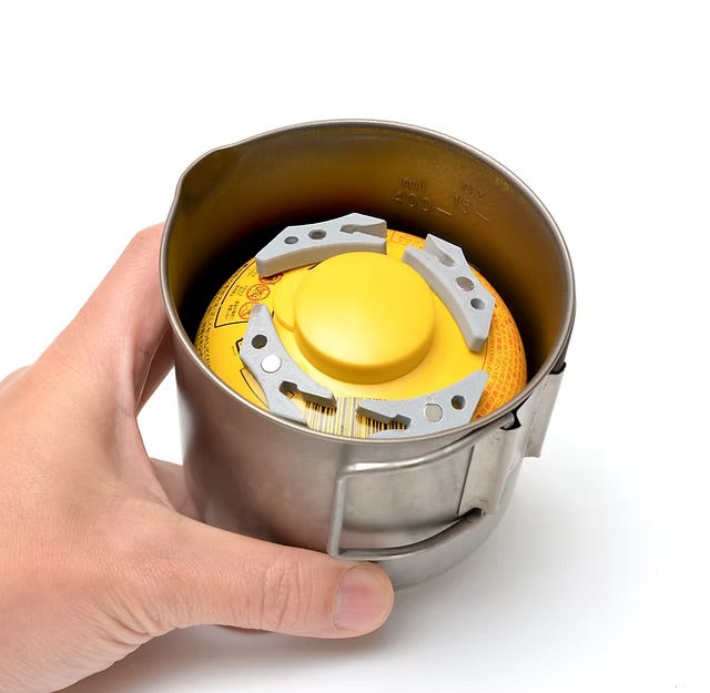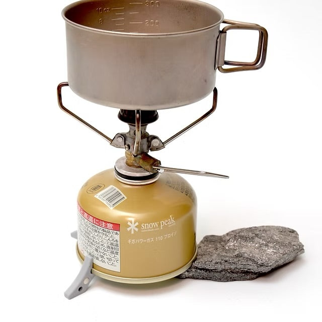 使用時は下部にガス缶、上部にバーナーヘッドという縦長の構成になり、その上にクッカーを置いて、湯沸かしや調理をするわけですが、水分などの比重の重いものが上にくるので(重心が上の方に集中し)グラグラと不安定な状態になってしまうのを多くの人が感じていると思います。