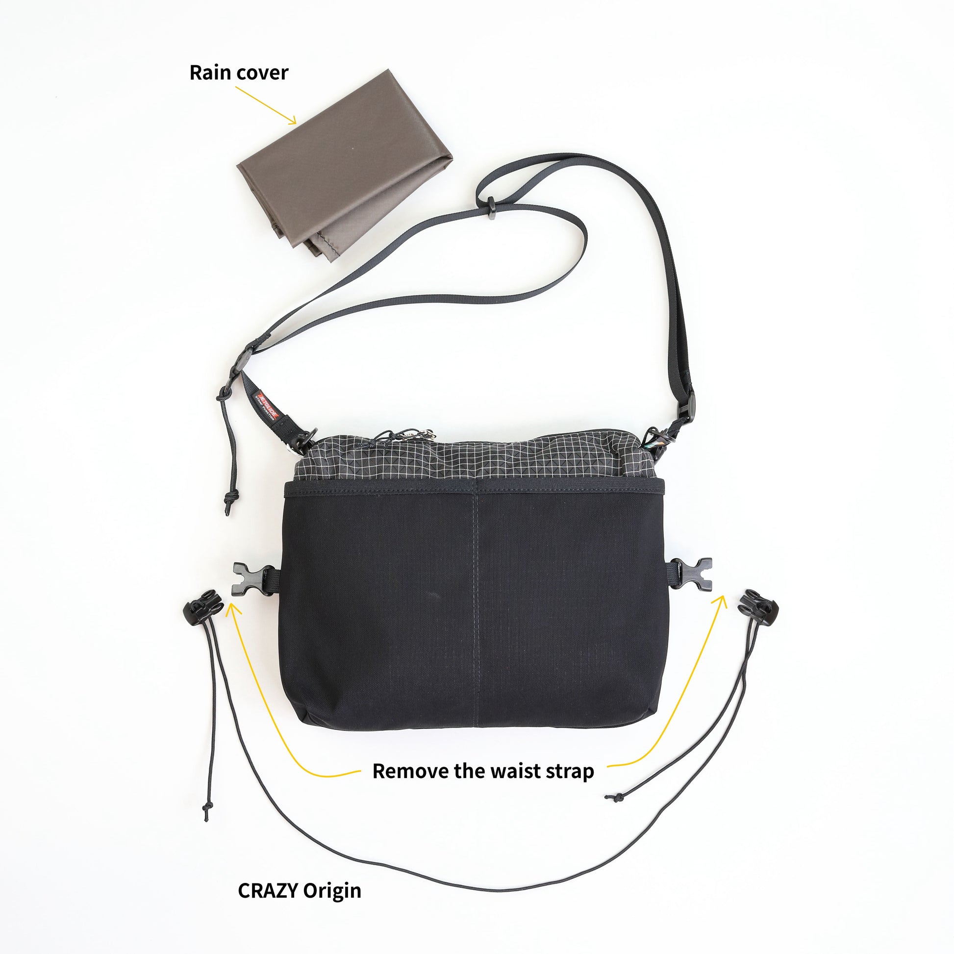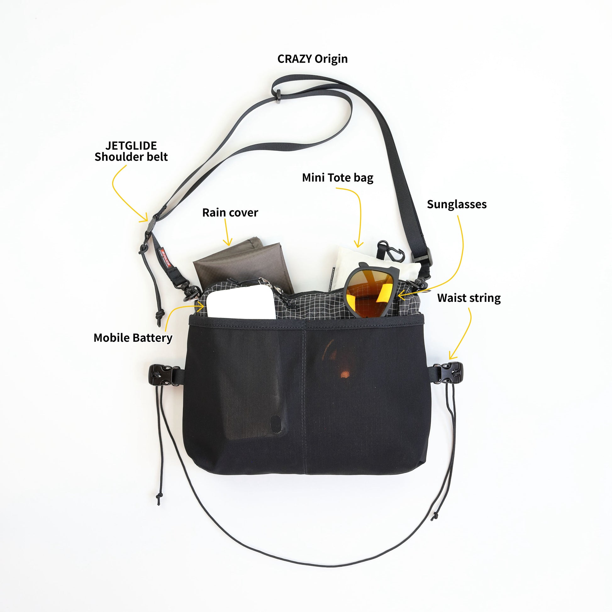 その結果、ウエスト紐を腰に取り付けることで、CRAZYを斜めがけして行動しても揺れにくくなっております。