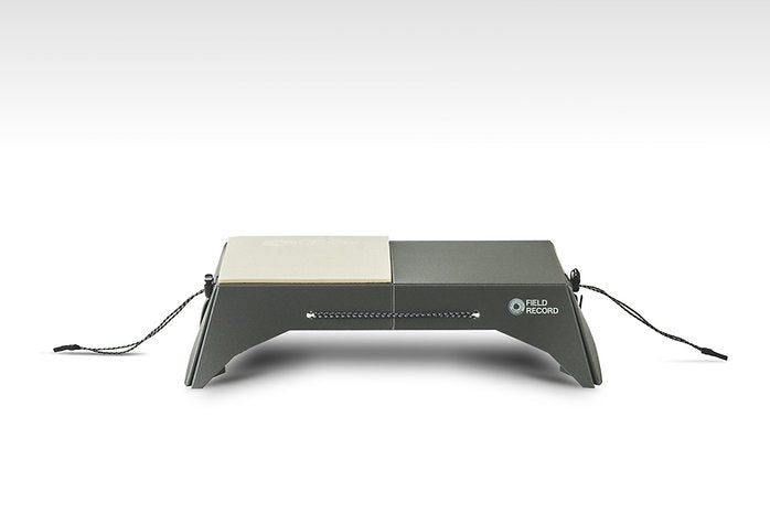 一枚のポリプロピレン板を太さ1.5mmのオリジナルダイニーマ芯ガイラインで締めることにより重さ45gの超軽量のテーブルになります