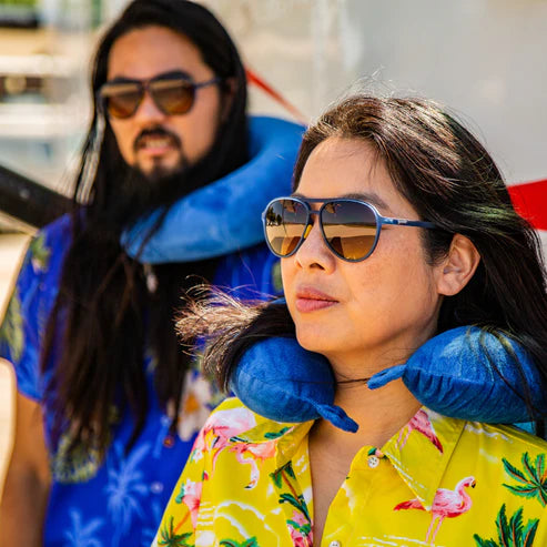 ・ブルー×ブラウンのクラシックなティアドロップ型サングラス