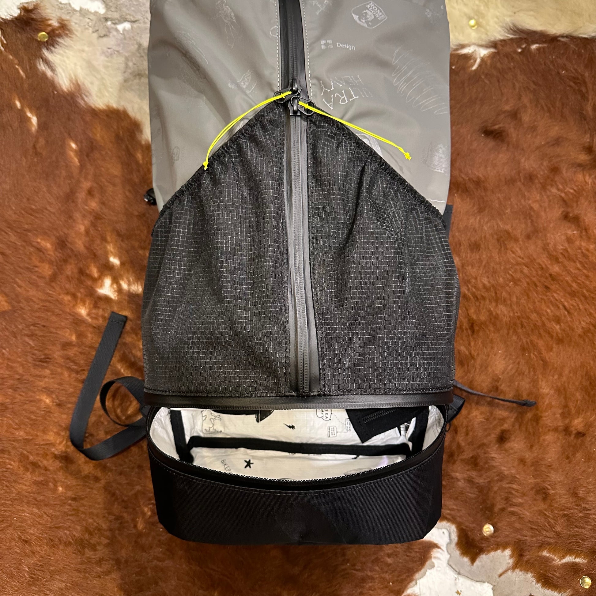 また仕切りをファスナーで開閉可能で1気室のバックパックとしても使用可能です。