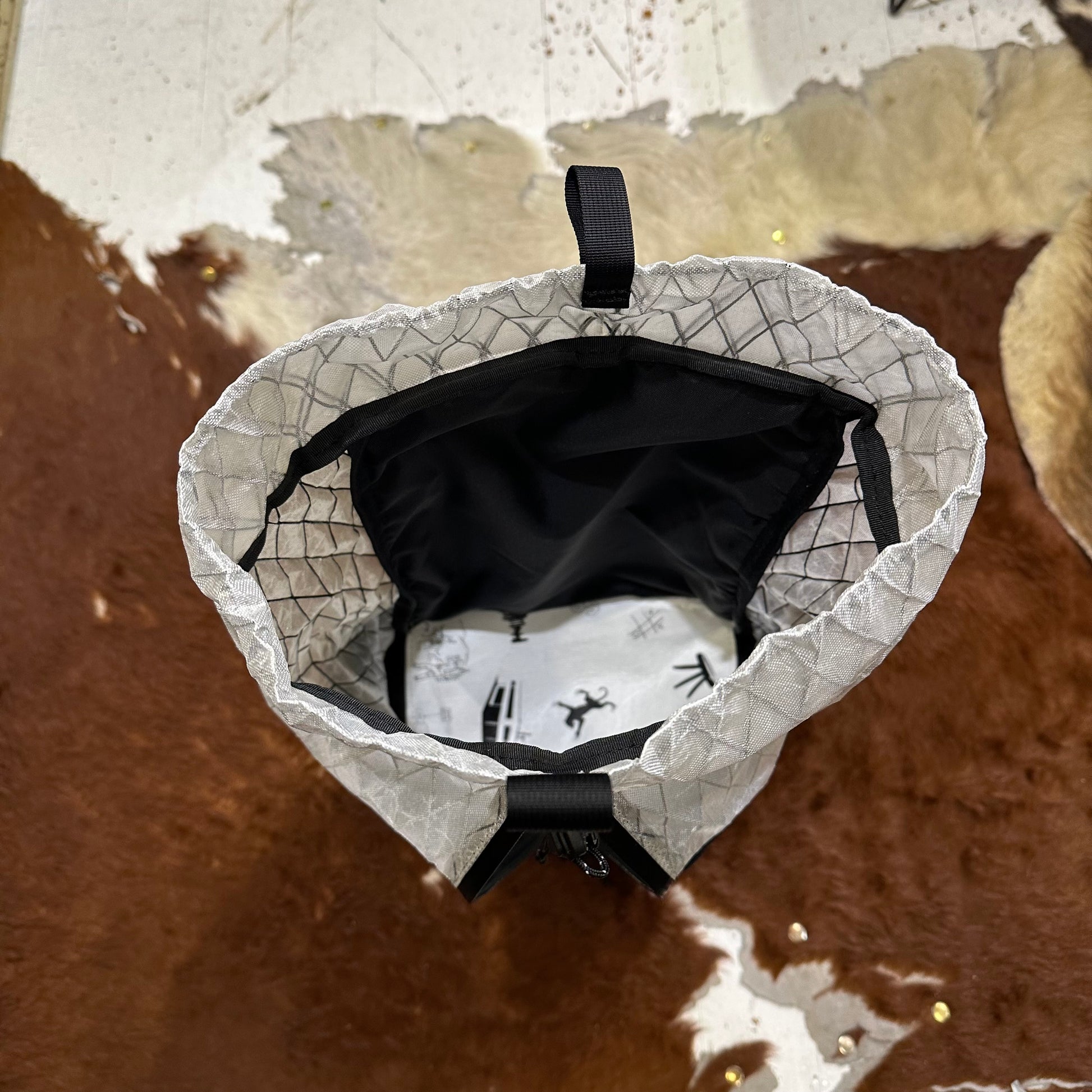 100Dナイロンをベースにダイニーマを格子状に織り込んだメッシュ品質。