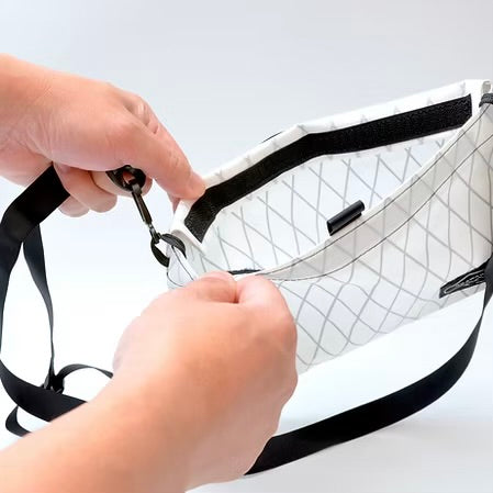 「Hang Sack」は山行中はインナーポケットとして使用しつつ、下山後や、山小屋に着いた時に、サッと取り出してサコッシュとして使えるという一味変わったポーチです。