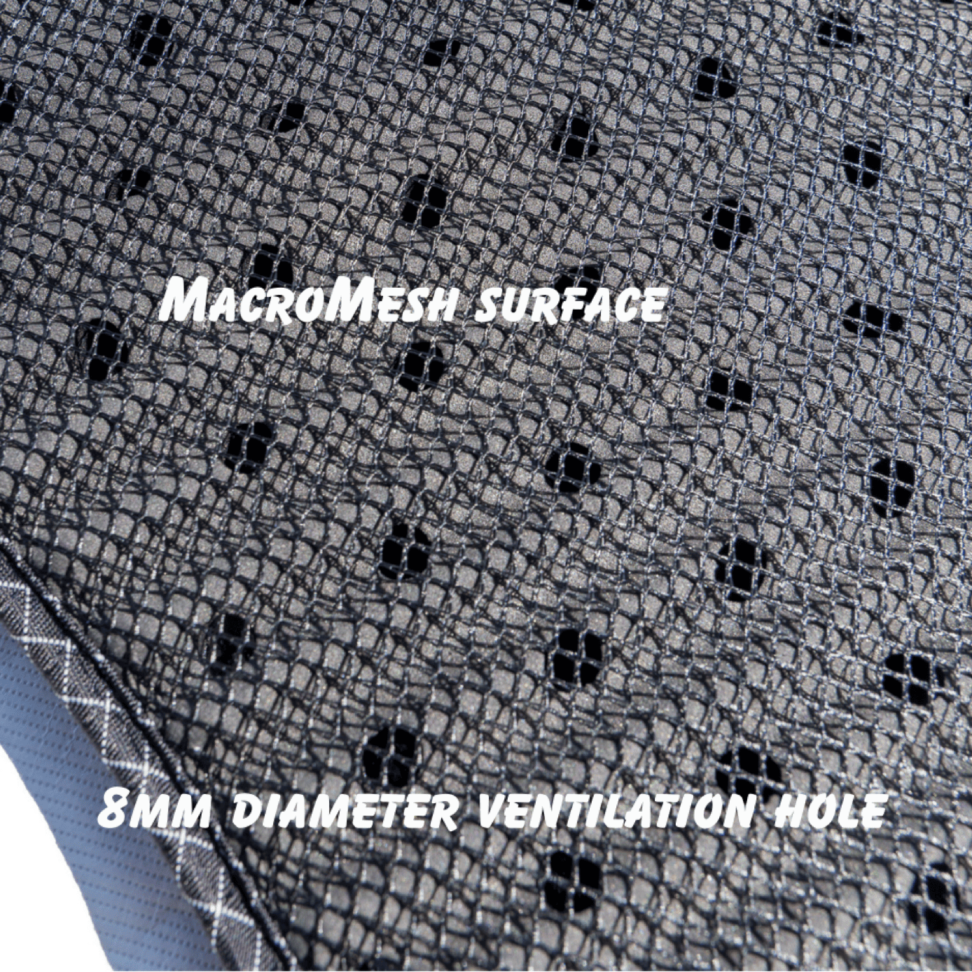 パック側の面には目の粗いMacro Meshを配置し、湿気を効果的に拡散して乾きやすくしています。