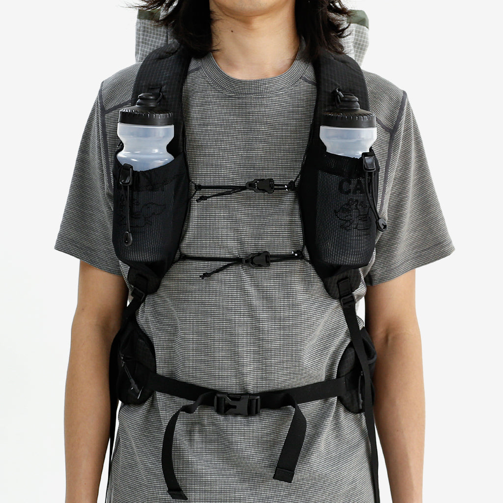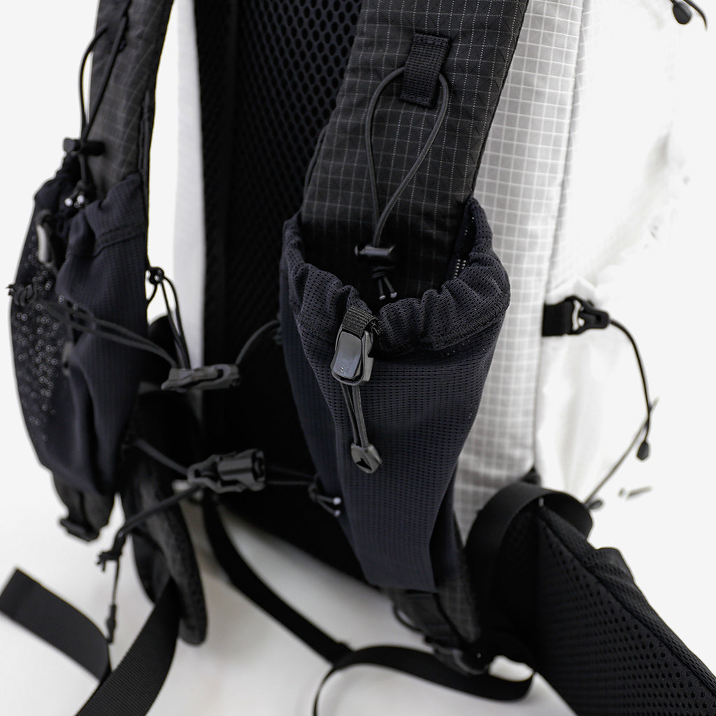 肩ハーネスのフロント部分には、メッシュタイプのポケットが左右に装備されているので、ドリンクやサングラスなどの小物を収納するのに便利です。