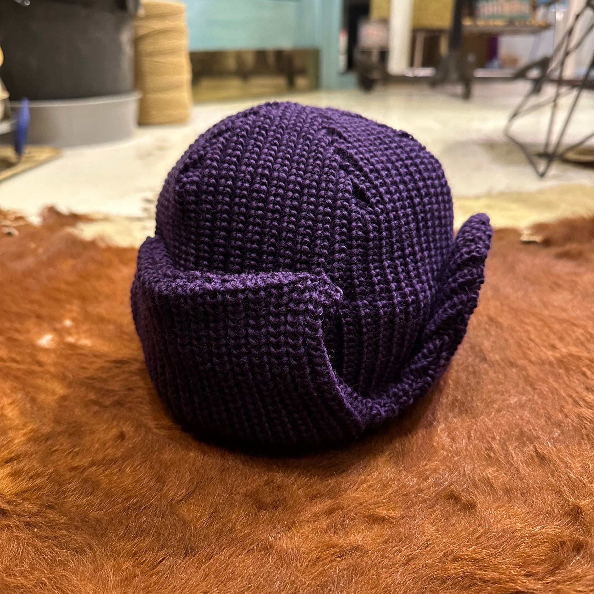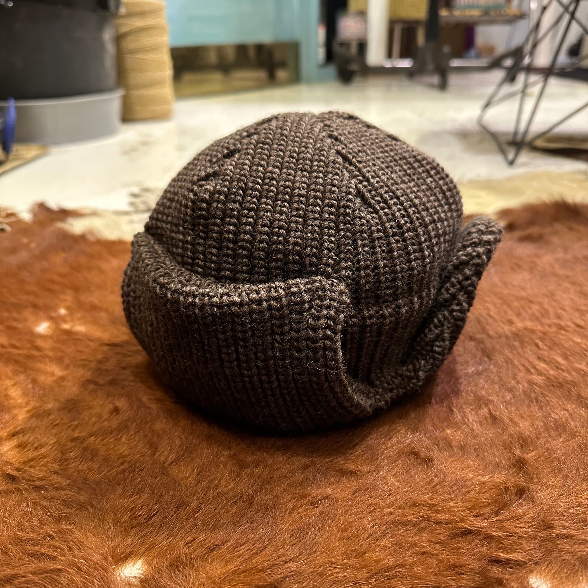 軽くて柔らかなウール糸を使用し、ふんわりとした風合いに仕上げたニット帽。