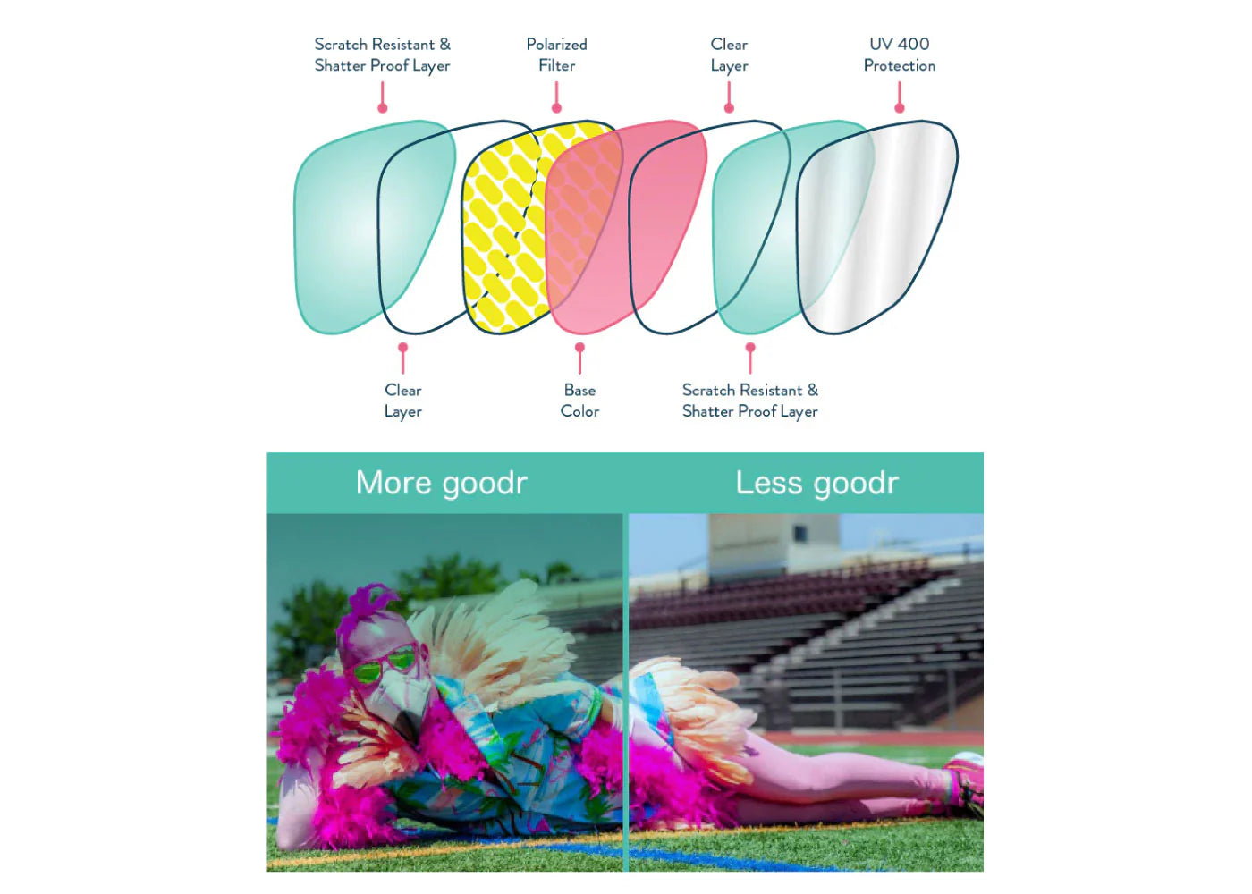 「滑らない」「跳ねない」「ALL偏光レンズ」の機能性に加え、手頃な価格で高いファッション性を備えた「goodr」は、あらゆるアウトドアアクティビティやタウンユースにも活用できる、カリフォルニアのハッピーな要素を盛り込んだ遊び心満載のサングラスブランドです。