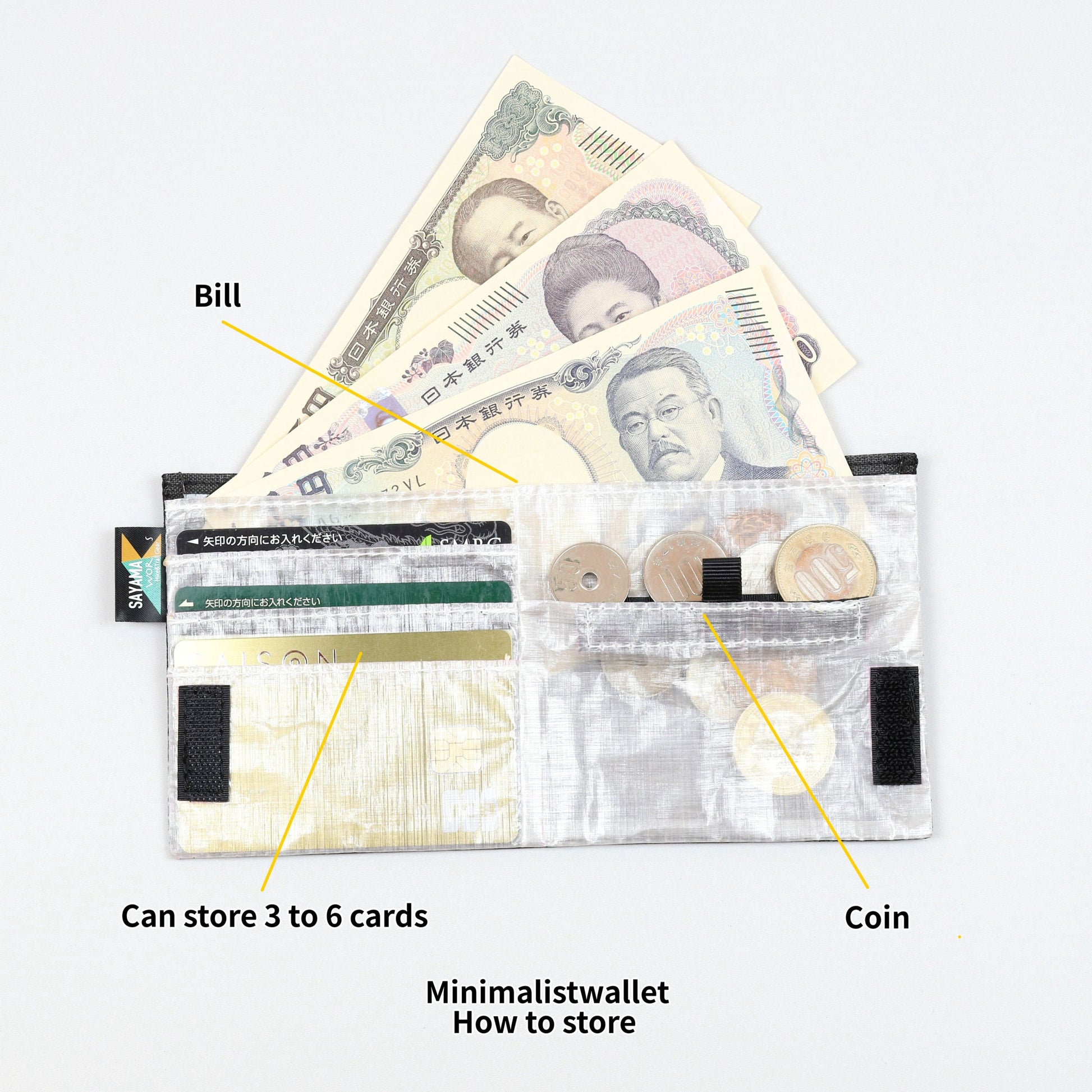 軽量・防水・撥水・耐久性に優れつつ、ユニバーサルデザインを意識したお札入れ・カード入れ(3枚〜6枚)・コインケースとしての機能を備えております。