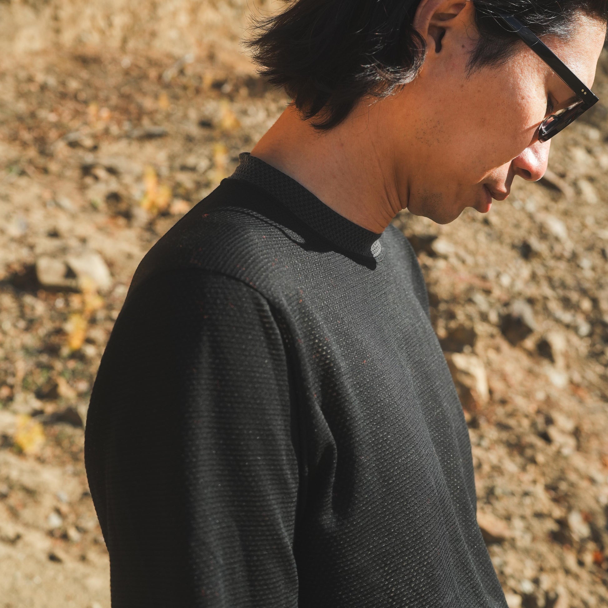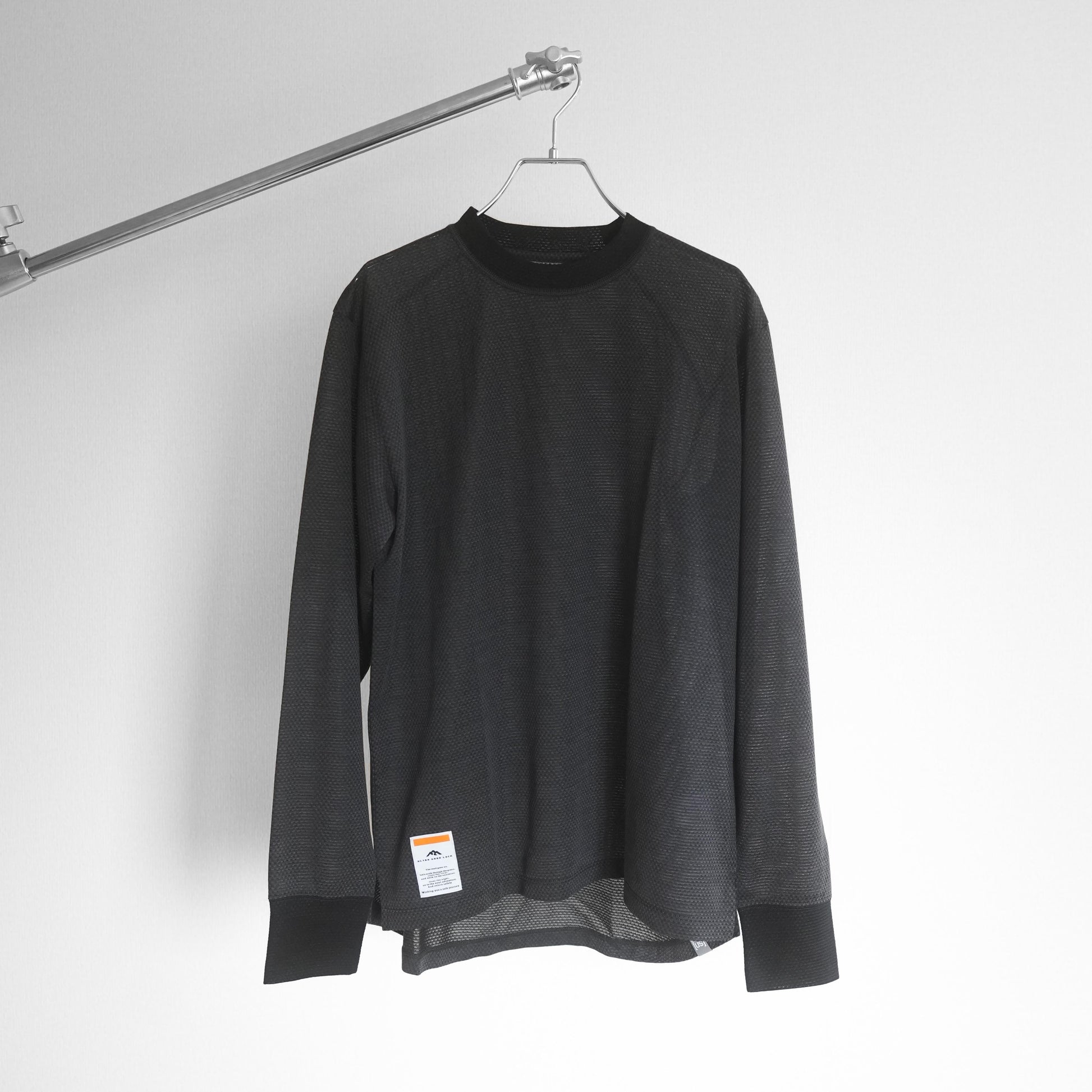 MMLT(MESH MOCK LONG T)はウール混紡のメッシュ生地を使ったモックネック仕様のロングスリーブTシャツです。