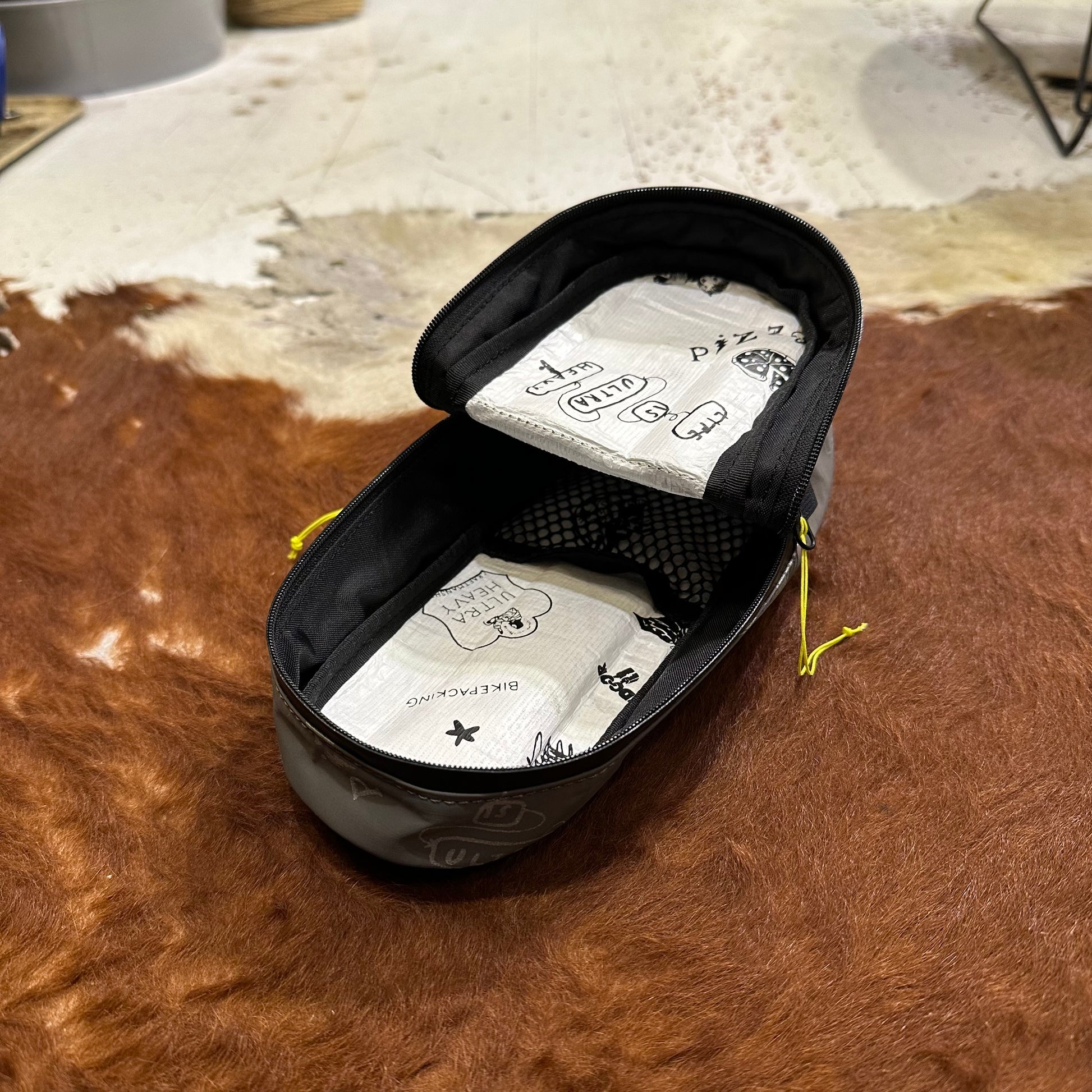 防水性のあるコーデュラ3レイヤーにULTRA HEAVY柄のリフレクタープリント。
